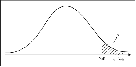 Die obige Abbildung kann wie folgt interpretiert werden: Ein Unternehmen muss freie Mittel der Höhe VaRα(t) besitzen, um einen Verlust der Höhe 100 × (1 – α) % ausgleichen zu können.